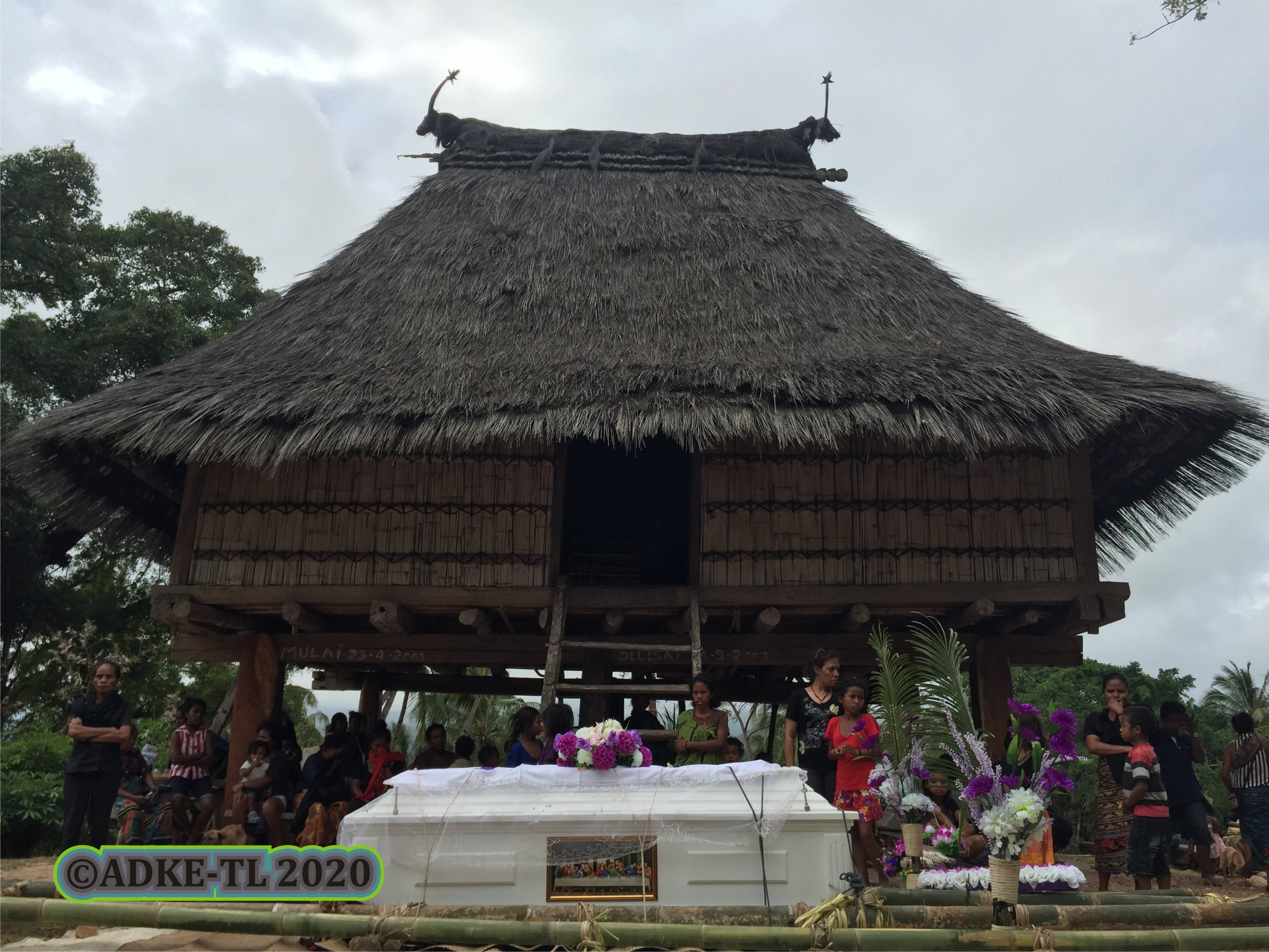 Ida ne’e serimónia funeráriu husi grupu lian Naueti nian husi Suku Babulu, Uatolari, Munisípiu Viqueque. Buat importante liu husi serimónia ida-ne’e maka troka sasán entre fetosaan no umane ho naran “rai-hlu rai-taka” (rai=entrega, hlu=sanan, take=luhu) iha Naueti. Sasán sira ne’e simboliza bensa ka valor femininu husi umane ba fetosaan ne’ebé troka ho sasan maskulinu nian reprezenta ideia seguransa ka protesaun. ___________ This is a funeral ceremony of the Naueti speaking community in the village of Babulu, Uatolari, Viqueque. The most important elements of this ceremony are the ritual exchange of goods between the fertility-takers and receivers known in Naueti as “rai-hlu rai-taka” (handing over the goods, handing over the woven basket). These good symbolise blessing or the exchange of feminine goods from the wife-giving clan with masculine items representing the notion of security and protection.