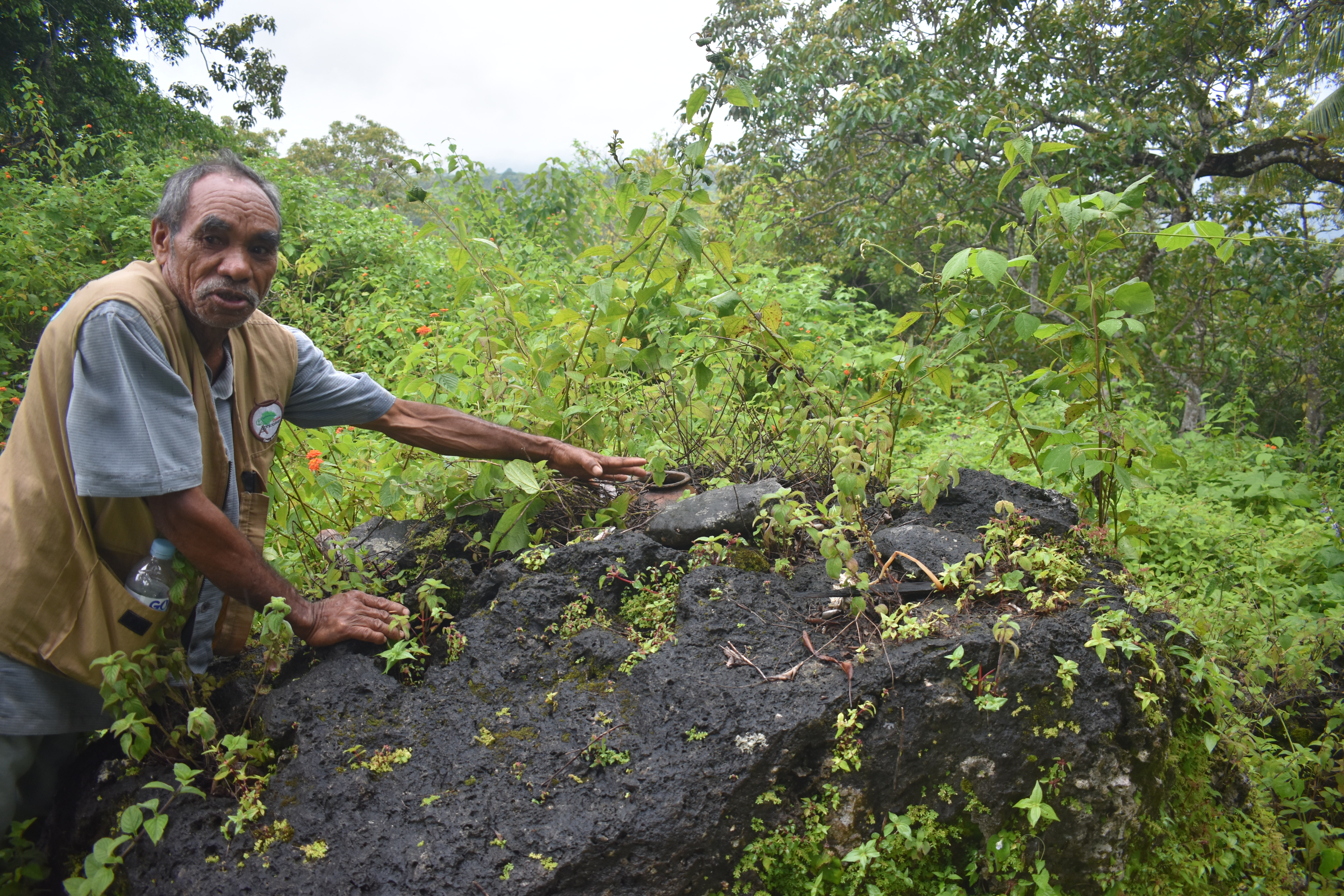 Timor-Leste hanesan nasaun ho klima tropiku ne'ebé mak iha klima rua de’it: tempu udan no tempu bailoron. Iha tempu udan ita sei haree ai tahan no foho sira matak no iha tempu bailoron ita sei haree rai maran. Bei'ala sira iha tempu uluk ho sira nia matenek tradisionál bainhira sira haree udan ben menus/bailoron naruk sira hahú halo rituál “bolu udan”. Matenek ida ne’e mak sira fahe ba sira nia oan no bei-oan sira to’o agora mós sei kontinua nafatin halo rituál ne’e hanesan akontese iha aldeia Kaitaranau, suku Loelubu, postu administrativu Vemasse, Munisipiu Baucau. Objetivu hosi rituál bolu udan ne’e mak atu bolu udan ben bainhira tempu bailoron naruk, dala ruma tempu udan maibé udan la mai no iha tempu ida ne’ebé mak komunidade sia presiza udan ben maibé la'ós iha tempu udan nian. Iha momentu atu halo rituál ne’e komunidade sira liuliu autoridade sira, lia na'in ka katuas sira sei tuur hamutuk hodi deside para komunidade sira hotu-hotu kontribui osan hamutuk hodi sosa materiál prinsipál ba rituál ne’e, hanesan: Surik Lulik, Bua, Malus, Fahi aman mean, Manu aman mean, no bee iha talas tahan, no ema ne'ebé iha kompeténsia no kapasidade atu halo Ritual ne'e mak sira husi Umalisan “Nunume”. Rituál ne’e halo iha fatuk boot ida ne’ebé mak fahe ba estasaun tolu hanesan: ain fatin, sanan rai iha fatuk leten, no fatuk belar katuas sira nia tuur fatin. Aleinde ne’e fatin rituál ne’e mós utiliza hodi halo tara bandu ba sasán no animál komunidade sira nian atu nune’e ema labele na'ok. Bainhira materiál sira ba rituál preparadu hotu ona, lia na'in sira sei marka tempu hodi halo prosesu rituál. Primeiru atu hahú halo rituál ne’e, ba dala uluk nian sei hasai kohe mama nian iha uma lisan “Nunume”. Depois dé ida ne’e iha ema na'in rua sei lori Bua matak ho Nu’u. Maski oituan mós sira na'in rua mak sei hulan hamutuk hodi sa'e ba fatin rituál, depois ema ida sei tuir tan sira hodi kuru bee iha talas tahan mak lori sa'e ba tan sira na'in rua. Sa'e ba iha estasaun sanan rai iha fatuk leten ne’e sira sei tau kohe mama ne’e no hahú hamulak, hafoin ida ne’e sei oho fahi mean ho manu mean hodi haree nia aten atu hatene nia aten ne’e di'ak ka lae, no manu ne’e sei lori tun ba iha estasaun fatuk ain fatin hodi tukir no han. Maibé na'an ne’e só katuas sira de'it mak bele han no na’an fahi ne’e sei lori balun ba tau estasaun sanan rai iha fatuk leten no sei tau iha sanan rai laran. Na'an fahi nia restu sei han hamutuk. Bainhira han na’an sira ne’e tenke han halo hotu no labele lori ba uma. Depois dé han hotu, katuas lia na'in sei hisik bee ne'ebé iha talas tahan ne’e ba ema sira ne’ebé mak partisipa iha rituál ne’e no sei lori rota baku ema hotu nia kotuk nune’e ema hotu sei tanis no tuir fiar katak matan been ne’ebé tun ne’e mak sei sai udan no udan sei mai iha momentu ne'ebá. Rituál refere sei han tempu durante loron ida tomak no bainhira halo rituál ne’e só mane de'it mak bele sa'e ba fatin rituál no tuir rituál ne’e no bandu uza faru metan durante prosesu halo rituál refere. ------------------------------------------------------------------------------------------------------------------------------------- Timor-Leste is a tropical country with only two climates: the rainy season and the dry season. In the rainy season we will see green trees and green mountains and in the dry season we will see dry and arid land. In the past, when our ancestors saw the rainfall decreasing / the dry season was too long, they used their traditional knowledge to perform rituals to call for rain. This knowledge they passed down to their children and grandchildren until now and their children and grandchildren continue to perform this ritual in Kaitaranau, Loelubu village, Vemasse sub-district, Baucau Municipality. The purpose of this rain calling ritual is to call for rain when there is a prolonged dry season. Sometimes the rainy season arrives, but the rains do not come and also often the community desperately needs rain in the middle of the dry season. When the ritual is to be performed, the community, especially the rulers, Lia Nain, or the elders will hold a meeting together to decide that all the community can contribute to buying the main materials for the ritual, such as sacred swords, areca nuts, betel leaves, red rooster pigs, red roosters and water in taro leaves. The people who have the competence and capacity to perform this ritual are those from the traditional house "Nunume". The ritual is made on a large rock divided into three places, namely "ain fatin", "sanan rai iha fatuk leten" and "fatuk belar" for the elders to sit to perform the ritual. In addition, the ritual place is also used for "Tara bandu" (hanging up items via a public ceremony to show that it is now forbidden to do certain things in that area (e.g. chop down trees, harvest a crop, fish, or commit violence) to prevent the robbery of people's belongings and animals. When the materials are complete, the Lia Nain will mark the time for the ritual process. To begin the ritual, the Kohe (woven basket) will first be taken out of the traditional house, "Nunume," and then two people will carry the betel nut with the coconut. Although it is light, they both have to carry it together to the ritual place, then someone will follow them to collect water on taro leaves and carry it up to the ritual place. At the "Sanan rai iha fatuk leten" spot will be placed kohe (woven palm leaf bag) along with betel nut and the Lia Nain starts to pray. Then they will stab the Red pig and red chicken to see whether this ceremony is good or not through the intestines of the chicken and pig. After that, the chicken will be taken to "Fatuk ain fatin" to be roasted and eaten but only for the Lia-Nain and the pork will be taken to "Sanan rai iha fatuk leten" and will be put in the clay pot. The remainder of the pork will be eaten together. The pork must be eat