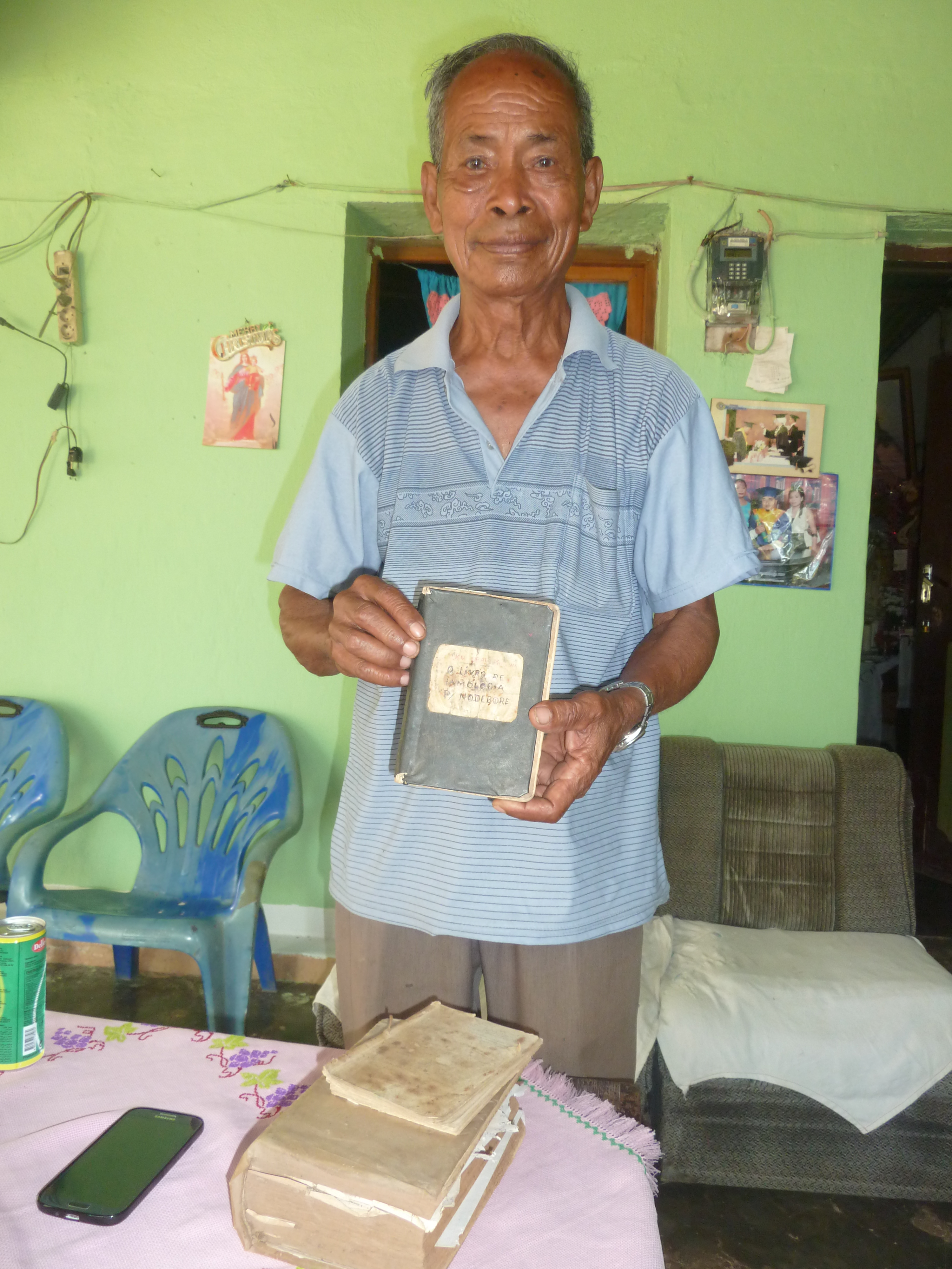 Durante tempu rezisténsia (1976-1978) Sr. Manuel Pinto kaer responsibilidade kona-ba saúde no peskiza kona-ba saúde/ai-moruk nu'udar xefe mediku "pe deskalsu" (barefoot doctor). Nia hatene uza ai-moruk tradisionál oioin no mós uza terapia "acupressure". Tuir nia sasin rasik nia simu nia matenek kona-ba ai-moruk husi Nossa Senhora ne'ebé hanorin nia. ____________________ During the resistance years (1976-1978), Manuel Pinto was in charge of health and research into traditional medicines in his role as barefoot doctor. He is experienced at using a wide range of traditional medicines and also uses acupressure. Manuel Pinto claims that his skills derive from Our Lady who imparted the knowledge to him.