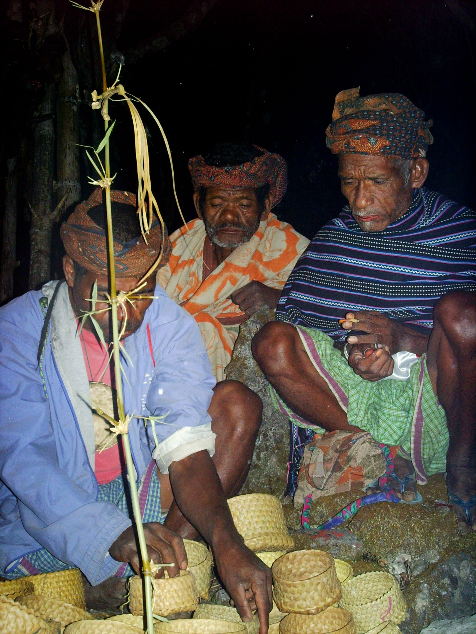 Liu tiha loron ne’ebé komunidade Saburai sunu du'ut, duni no kaer balada sira iha territoriu, komunidade tomak halibur malu iha fatin ida naran ‘La' Ta'. Iha La' Ta' membru ida-idak husi uma lisan Saburai nian tenke lori buat ruma ba serimónia (liman etun) hanesan animál, foos, batar ka bua no malus entrega ba 'Ukon Gomo' ne’ebé responsavel ba prepara ai-hán seremónia nian. Lolo Gomo sira tau matan ba saida de’it ema ida-idak lori no nia iha knaar atu tau matan katak sira lori aihán lulik fila fali ba sira-nia uma. Lokar Gomo (kukun-na’in) hamutuk ho Lal Gomo (Lia-na’in), Lolo Gomo (Kabu) no Ukon Gono (Lia Nain) hamulak iha ai fatuk na’in tolu ne’ebé reprezenta grupu tolu ne’ebé uma lisan sira hotu tama ba hanesan: Loi Nai (hamriik mesak), Mone Ichu Mil / Gamal Ichu, Ratu ka Datu Mil / Gamal Datu. Bainhira serimónia remata membru uma lisan sira hotu nian lori hahán lulik no bua malus fila fali ba sira-nia uma. Serimónia ida ne'e nia objetivu maka haburas rai. Hafoin ema hotu hotu fila ba uma, kukun na’in sira hamutuk ho uma ulun no inan feto sira ne’ebé hein uma lori ai-han no hamulak ba bei’ala sira iha knua tuan. —————————— Following the day on which the Saburai community burns the grass and rounds up and catches animals in the local vicinity, the community gathers together in a place known as “La’ Ta.” At “La’Ta” individual members of the Saburai house community are obliged to bring something to the ceremony, for example animals, rice, corn or betel nut and leaf, to surrender to “Ukon Gomo” (custodian of the word) who is responsible for preparation of the ceremonial food. The “Lolo Gomo” are in charge of paying attention to what each person contributes to the ceremony and of ensuring that they take home again any “lulik” foods. The Lokar Gomo (spirits of darkness) together with the Lalo Gomo (custodian of the word), the Lolo Gomo (head) and the Ukon Gono (custodian of the word) pray at the three pillars representing the three groups that all the spirit houses are part of, namely: Loi Nai (Stands Alone), Mone Ichu Mil / Gamal Ichu, Ratu or Ddaatu Mil / Gamal Datu. When the ceremony concludes, all the house members take home the “lulik” foods and betel nut and leaf. The objective of this ceremony is to enrich and make fertile the earth. After everyone has returned home, the spirits of darkness together with the house chief and the women house guardians take the food and pray to the ancestors in the old hamlet.